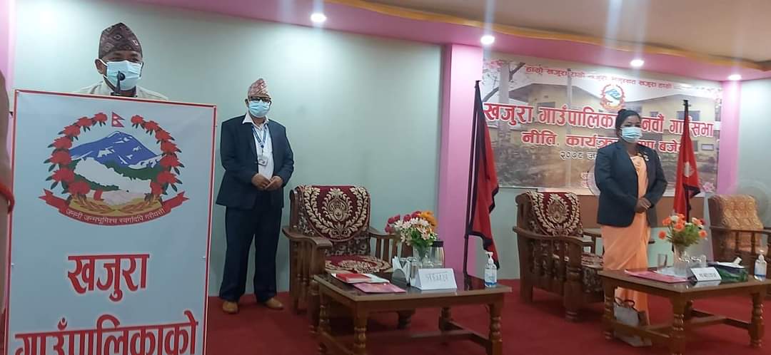 खजुरा गाउँपालिकाको नवौं गाउँसभामा अध्यक्ष किस्मतकुमार कक्षपतिले प्रस्तुत गरेको आर्थिक वर्ष २०७८÷०७९ को नीति तथा कार्यक्रम पारित भएको छ । उपाध्यक्ष एकमाया विकको सभाध्यक्षतामा आज बुधबारदेखि शुरु भएको गाउँसभामा अध्यक्ष कक्षपतिले नीति तथा कार्यक्रम प्रस्तुत गरेका थिए । अध्यक्ष कक्षपतिले प्रस्तुत गरेको नीति कार्यक्रममा सभा सदस्य कान्तुराम गौतम, देउमाया थापा, भागीरथ सुनार, डिल्लीप्रसाद रेग्मी, हजुरा बलमे छलफलमा भाग लिँदै सुझाव पेश गरेसंगै नीति कार्यक्रम सर्वसम्मतले पारित भएको हो ।