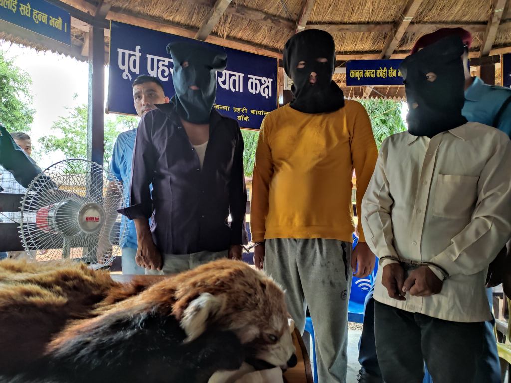 बाँके प्रहरीले भालुको पित्त र रेडपाण्डाको छाला सहित नेपालगञ्जबाट तिन जनालाई पक्राउ गरेको छ । नेपालगन्ज उपमहानगरपालिका–१ पुष्पलाल चोकस्थित राप्ती गेष्ट हाउसमा संरक्षित वन्यजन्तुका अंगको कारोबार भइरहेको सूचनाको आधारमा उनीहरुलाई पक्राउ गरिएको जिल्ला प्रहरी कार्यालय बाँकेले जनाएको छ । लुम्बिनी प्रदेश प्रहरी कार्यालय दाङ र जिल्ला प्रहरी कार्यालय बाँकेबाट खटिएको संयुक्त प्रहरी टोलीले राती करिब ८ः४० बजे उनीहरुलाई पक्राउ गरेको जिल्ला प्रहरी कार्यालय बाँकेका प्रहरी उपरीक्षक श्यामकृष्ण अधिकारीले जानकारी दिए । राप्ती गेष्ट हाउसमा तलासी लिने क्रममा होटलको १० नम्बर कोठाबाट उनीहरु पक्राउ परेका हुन् । पक्राउ पर्नेहरुमा दाङ घोराही उपमहानगरपालिका–४ का ४९ बर्षिय भक्तबहादुर पुन, ४१ बर्षिय केशव पुन र शान्तीनगर गाउँपालिका–१ का २९ को रोबिन बुढा रहेका छन् । प्रहरीका अनुसार कालो झोलाभित्र सेतो कपडामा रहेको संरक्षित रेडपाण्डाको छाला एक थान र चार वटा भालुको पित्तजस्तो देखिने बस्तु बरामद गरेको छ ।