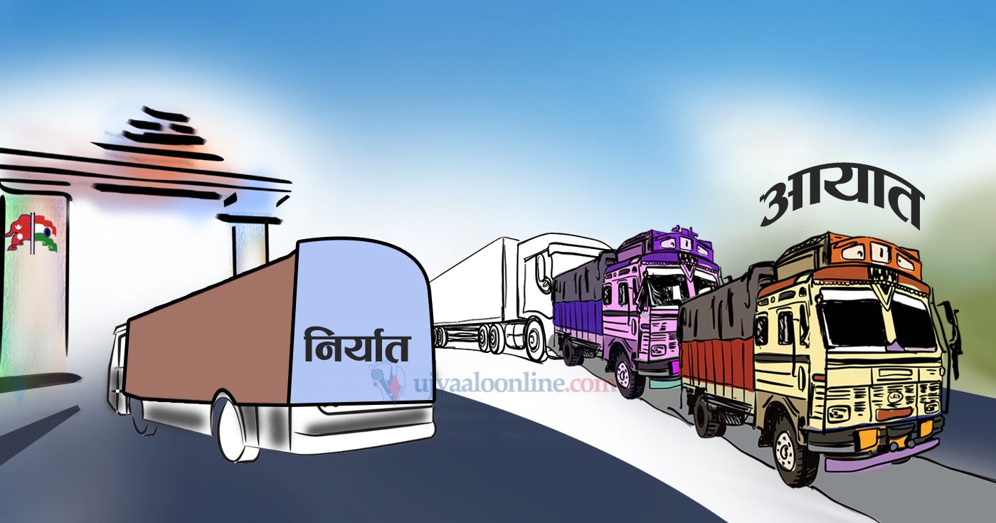 चालु आर्थिक वर्षको दुई महिनामै दुई खर्ब ७० अर्ब ४७ करोड रुपैयाँ बराबरको व्यापार घाटा भएको छ । गएकाे वर्षको २ महिनामा नेपालले एक खर्ब ५८ अर्ब ४० करोड ३२ लाख रुपैयाँ बराबरको व्यापार घाटा बेहोरेको थियो । भन्सार विभागका अनुसार गएकाे वर्षको २ महिनाको तुलनामा व्यापार घाटा ७० दशमलव ७५ प्रतिशतले हो । आयातसँगै निर्यातमा वृद्धि भएको छ । भदौ मसान्तसम्मको तथ्याङ्कअनुसार आयातमा ७५ दशमलव ८६ र निर्यातमा १ सय १५ दशमलव ४३ प्रतिशतले वृद्धि भएको छ । तथ्याङ्कअनुसार दुई महिनामा ४४ अर्ब तीन करोड ९५ लाख ९१ हजार रपैयाँ बढीको स्वदेशी वस्तुको निर्यात भएको छ भने तीन खर्ब १४ अर्ब ५१ करोड ७१ लाख रुपैयाँ बराबरको विदेशी वस्तुको आयात भएको छ । सबैभन्दा धेरै आयात भारतबाट भएको छ । भारतबाट एक खर्ब ८७ अर्ब ७१ करोड ८० लाख ४५ हजार रुपैयाँ बराबरको आयात भएको छ । भारतपछि ठूलो मात्रामा चीनबाट ४२ अर्ब ८४ करोड ७५ लाख रुपैयाँ बराबरको आयात भएको छ । २ महिनामा भारतमा ३६ अर्ब १७ करोड ४३ लाख र चीनमा १५ करोड ८० लाख रुपैयाँ बराबरको निर्यात भएको छ ।