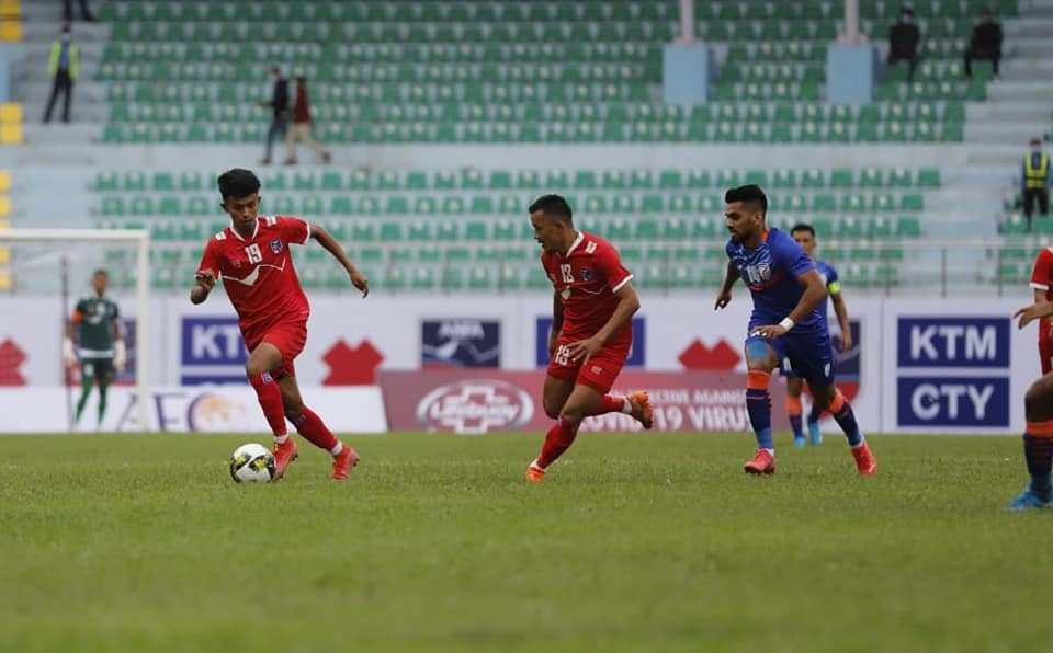 मैत्रीपूर्ण फुटबलमा नेपाल र भारतले बराबरी खेलेका छन् । पहिलाे मैत्रीपूर्ण फुटबलमा नेपाल र भारतले भारतले एक–एक गाेलकाे बराबरी खेलेका हुन् । दशरथ रङ्गशालामा भएकाे खेलमा अन्जन विष्टले ३६ औँ मिनेटमा गाेल गरेका अग्रता दिलाएका थिए । भारतका खेलाडी चिनलेनाना सिंह कोन्सामको ब्याक पासलाई गाेलकीपर गुरुप्रित सिंह सन्धुले नियन्त्रणमा लिन नसकेको बललाई अञ्जनले गाेलमा परिणत गरेका हुन् । तर नेपालकाे अग्रता दाेस्राे हाफमा रहन सकेन । भारतका अनिरुध थापाले खेलकाे ६० औँ मिनेटमा गाेल गर्दै खेल बराबरीमा ल्याएका हुन् । नेपाल र भारतबीचकाे दाेस्राे मैत्रीपूर्ण फुटबल आउँदाे शनिवार दशरथ रङ्गशालामा नै हुनेछ ।