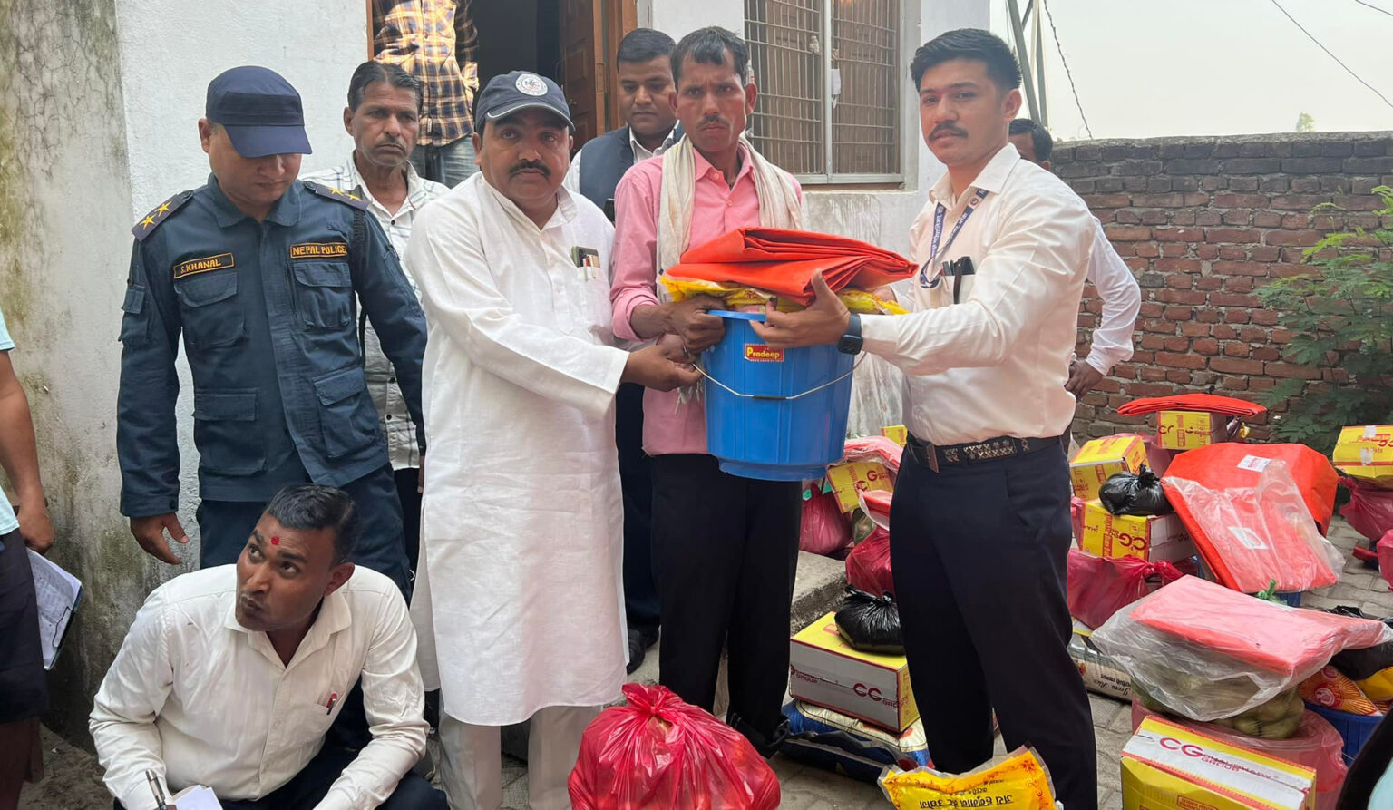 गाउँपालिकाको वडा नं.४ स्थित कृष्णनगर गाउँका १६ परिवारलाई प्रतिपरिवार २५ केजी चामल, ५ केजी आलु, २ केजी दाल, २ केजी प्याज, २ केजी नुन, १ थान त्रिपाल, २ थान डेक्ची, २ थान झुल, १ थान बाल्टी, १ पेटी चाउचाउ, १ थान जग, २ केजी चिउरा, १ प्याकेट दालमोट, १–१ थान डाडु पन्यु र ३ थान थाल उपलब्ध गराइएको छ ।