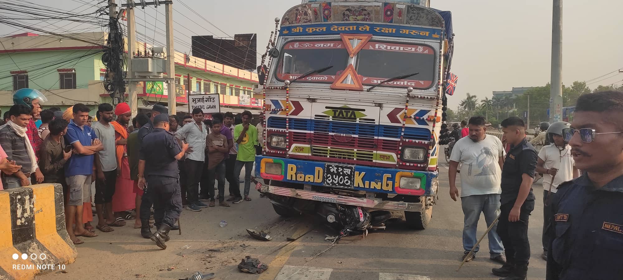ट्रक मुनि मोटरसाईकल घुस्यो, दुई जना घाईते