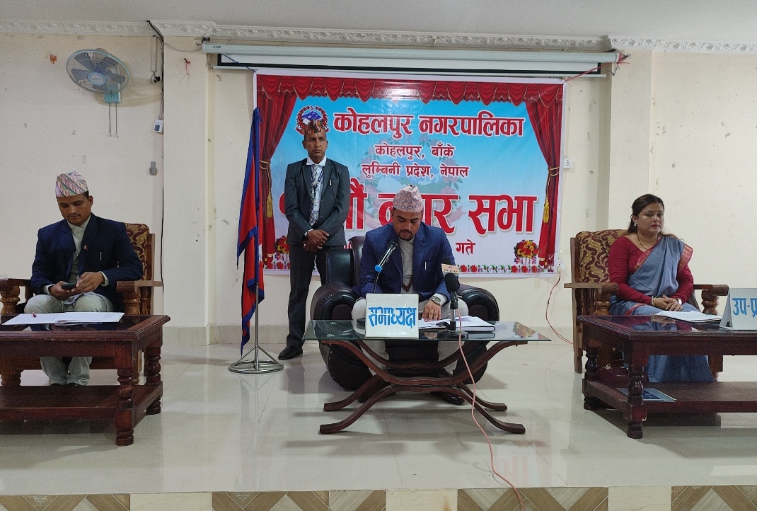 कोहलपुर: कोहलपुर नगर कार्यपालिकाको एघारौं नगर सभा बुधबारदेखि कोहलपुर नगरपालिलकाको शभा हलमा शुरु भएको छ । सभामा नगर प्रमुख पूर्ण प्रसाद आचार्यले आफ्नो कार्यकालको पहिलो नीति तथा कार्यक्रम प्रस्तुत गरेका छन ।