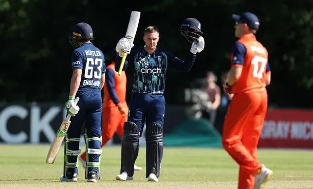 उसका जासन रोयले अविजित १ सय १ रनको शतकीय पारी खेले । यस्तै जोस बट्लरले अविजित ८६ रन जोडे । फिल साल्ट ४९ रनमा आउट भए । यसअघि पहिले ब्याटिङ गरेको नेदरल्यान्डले स्कट एडवार्डको ६४ तथा म्याक्स ओ दाउदको ५० र बास दि लिडको ५६ रन मद्दतमा २ सय ४४ रन बनाएको थियो । इङ्ल्यान्ड पहिलो खेलमा २ सय ३२ रन र दोस्रो खेलमा ६ विकेटले विजयी भएको थियो ।