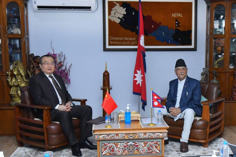 काठमाडौं: नेकपा एमालेका अध्यक्ष केपी शर्मा ओलीसित चिनियाँ कम्युनिस्ट पार्टी सीपीसीका विदेश विभाग प्रमुख लिउ जियन्चा भेटवार्ता गरिरहनु भएको छ । नेपालको चारदिने भ्रमणमा रहेका लिउ अध्यक्ष ओलीलाई भेट्न ओली निवास बालकोट पुग्नुभएको हो ।