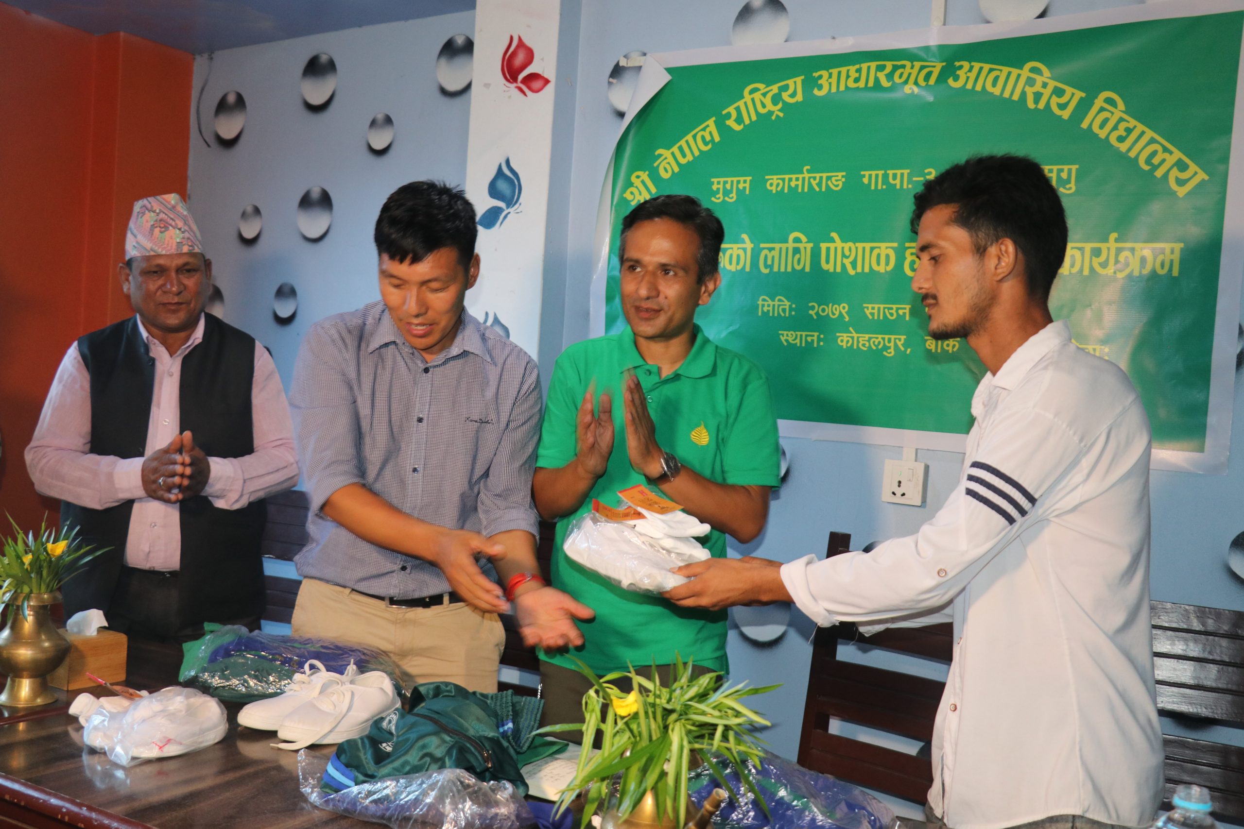 कोहलपुर / मुगुको कार्माराङ गाउँपालिका वडा नं. ३ ताखा स्थित नेपाल राष्ट्रिय आधारभूत आवासीय विद्यालयमा अध्ययनरत विद्यार्थीहरूलाई पोशाक सहयोग गरिएको छ ।