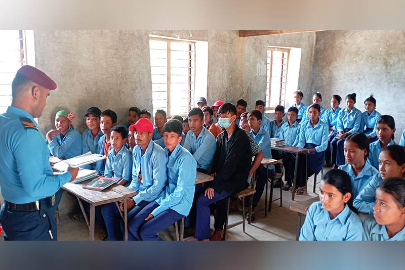 सल्यान : सल्यान प्रहरीले बालविवाह न्यूनीकरणसम्बन्धी विद्यार्थीलाई जानकारी दिन थालेको छ। समाजमा बढ्दै गएको बालविवाहविरुद्ध विद्यार्थीलाई सचेत गराउन कक्षा शुरु गरिएको जिल्ला प्रहरी कार्यालय सल्यानले जनाएको छ।