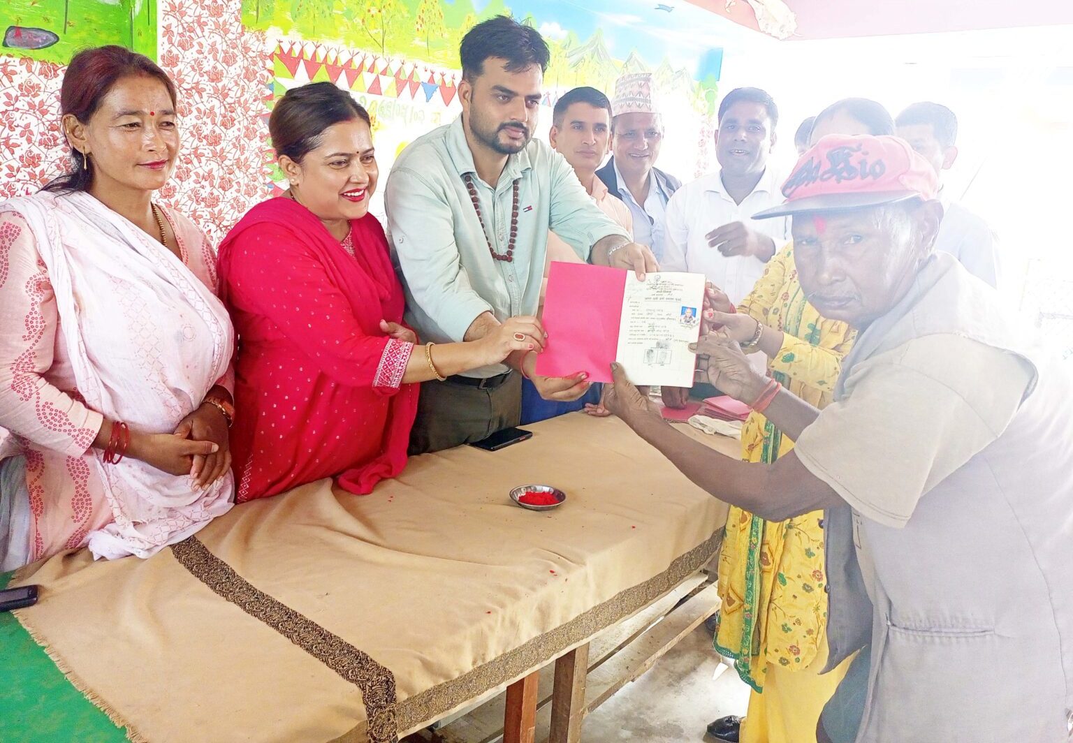 यस्तै वडा अध्यक्ष मुबारक अलि गुजरले वडा अध्यक्ष भएको पहिलो काम लालपूर्जा वितरण गर्ने उद्देश्य थियो सोही अनुसार आज लालपूर्जा वितरण गरिएको बताए ।