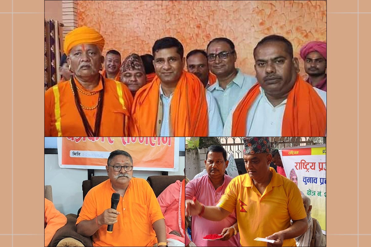 हिन्दूहरुको पहिचान राप्रपाको अभियान, मंसिर ४ गते हलोमा मतदानु भन्ने डा। राणाको चुनावी नारा छ। तर उनी जब मुस्लिम बस्तीमा पस्छन्, त्यसपछि उनको रुपरंग र बोलीव्यवहार फरक हुन्छ। केही दिनअघि मस्जिदमा प्रार्थना गर्न जाने मुस्लिम समुदायका मतदातालाई भेटेर उनले सबै जात, धर्म र सम्प्रदायको अधिकारका लागि आवाज उठाइरहेको जिकिर गरे।