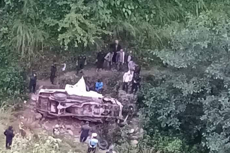 काठमाडौं : सल्यानको कपुरकोटमा जीप दुर्घटना हुँदा ८ जनाको मृत्यु भएको छ। एकजना घाइते भएका छन्। बाँकेको धकेरीबाट सल्यानको रिमकोटमा बिहे भोजमा सहभागी हुनेहरुलाई लिएर फर्केको रा १ ज ५६३ नम्बरको जीप गएराति कपुरकोट गाउँपालिका–३ मूलपानीमा दुर्घटना भएको जिल्ला प्रहरी कार्यालय सल्यानका प्रवक्ता इन्सपेक्टर सन्तोष खनालले जनाकारी दिए।