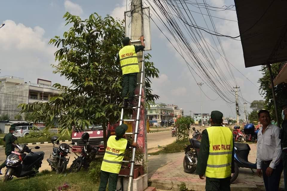 विज्ञापन प्रयोजनका लागि अनधिकृतरुपमा राखिएका त्यस्ता प्रचार सामाग्री हटाएर सम्बन्धित निकायलाई कारवाहीको दायरामा समेत ल्याउन थालिएको छ । अनधिकृतरुपमा आफ्नो प्रचार सामाग्री राखेको पाइएपछि सिभिल बैंकलाई कारवाहीको दायरामा ल्याइएको पनि प्रहरी प्रमुख थापाले बताउनुभयो । ’नगरपालिकासँग स्वीकृत नलिएरै सिभिल बैंकले विद्युतका पोलमा ३२ वटा होर्डिङ बोर्ड राखेको रहिछ थापाले भन्नुभयो–‘१६ हजार जरिवाना गरेर नगर प्रहरीको नियन्त्रणमा रहेका होर्डिङ बोर्ड फिर्ता गरिदिएका छौं ।’