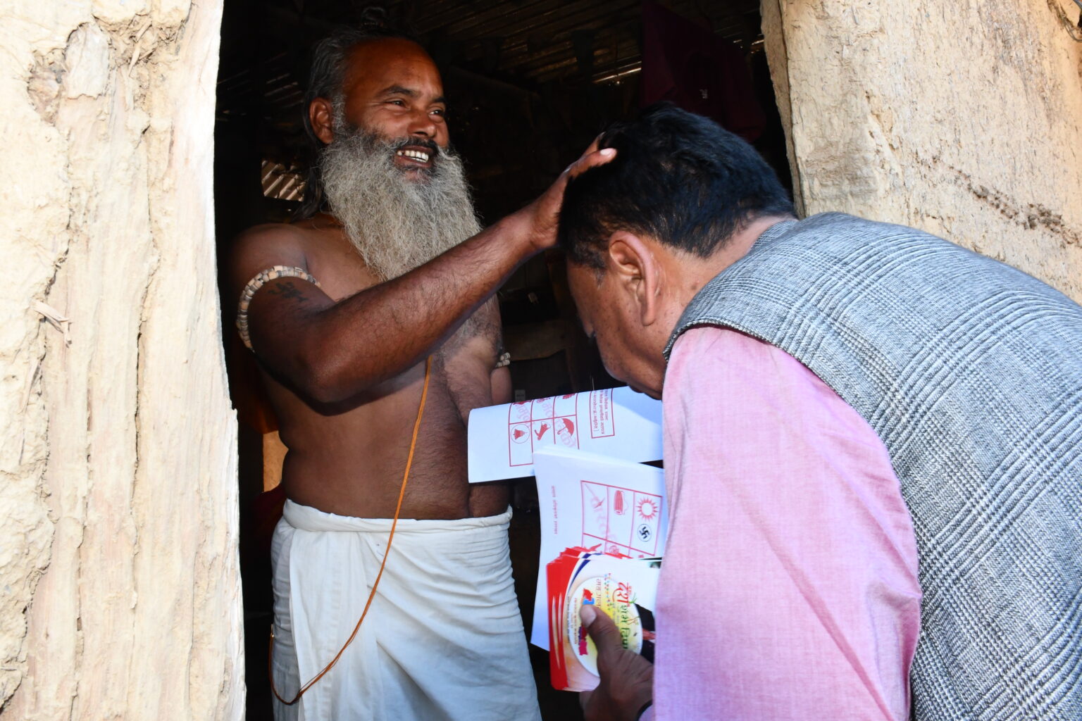 नेपालगन्ज : बाँके क्षेत्र नं. ३ मा नेकपा एमालेका तर्फबाट प्रतिनिधिसभा सदस्य पदका उम्मेद्वार किस्मतकुमार कक्षपतिलाई डलईपुरका बाबाले आर्शिवाद दिनुभएको छ । सोमवार चुनावी प्रचारप्रसार अभियान कै क्रममा प्रतिनिधि सभाका उम्मेद्वार किस्मतलाई ब्रम्हचारी बाबा मजाकी दाशले आर्शिबाद दिनुभएको हो । खजुरा गाउँपालिकाको वडा नं. ५ स्थित बसन्तपुर, डलईपुर र उढरापुरमा गरिएको घरदैलो कार्यक्रमका विच किस्मतलाई बाबाले आर्शिवाद दिई जितको शुभकामना दिनुभएको थियो ।