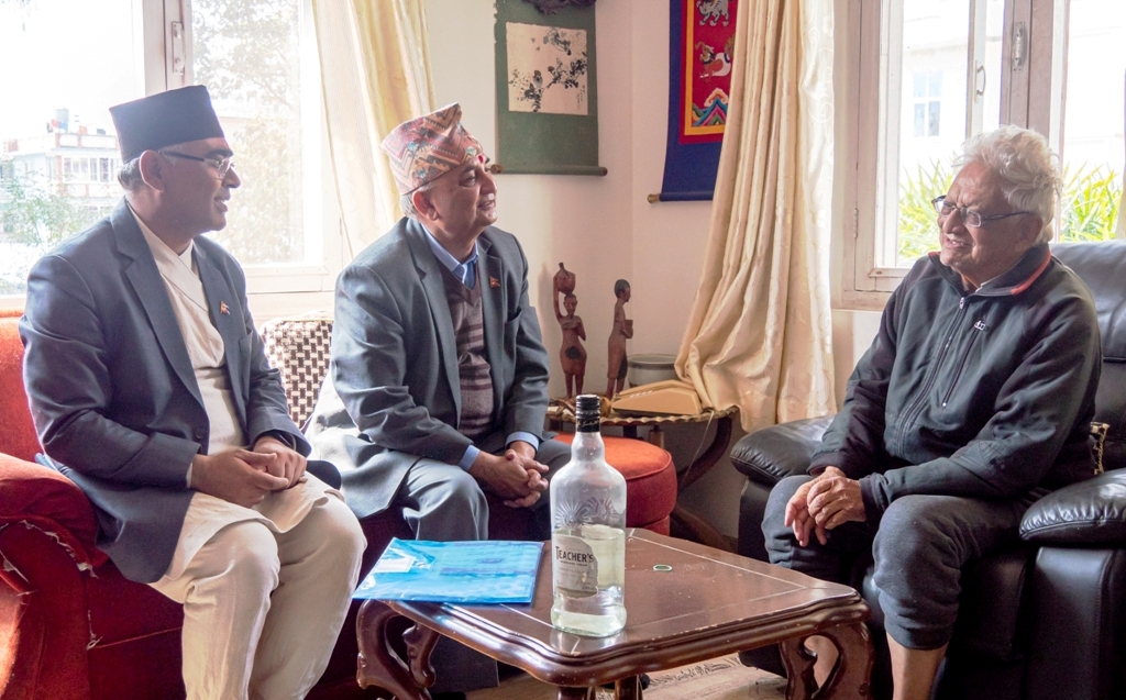 काठमाडौं: काठमाडौं निर्वाचन क्षेत्र नम्बर ५ मा चुनावी भेटघाटमा रहेका नेकपा (एमाले) का वरिष्ठ उपाध्यक्ष ईश्वर पोखरेललाई नागरिक अगुवा डा.मथुराप्रसाद श्रेष्ठले साथ दिनुभएको छ ।