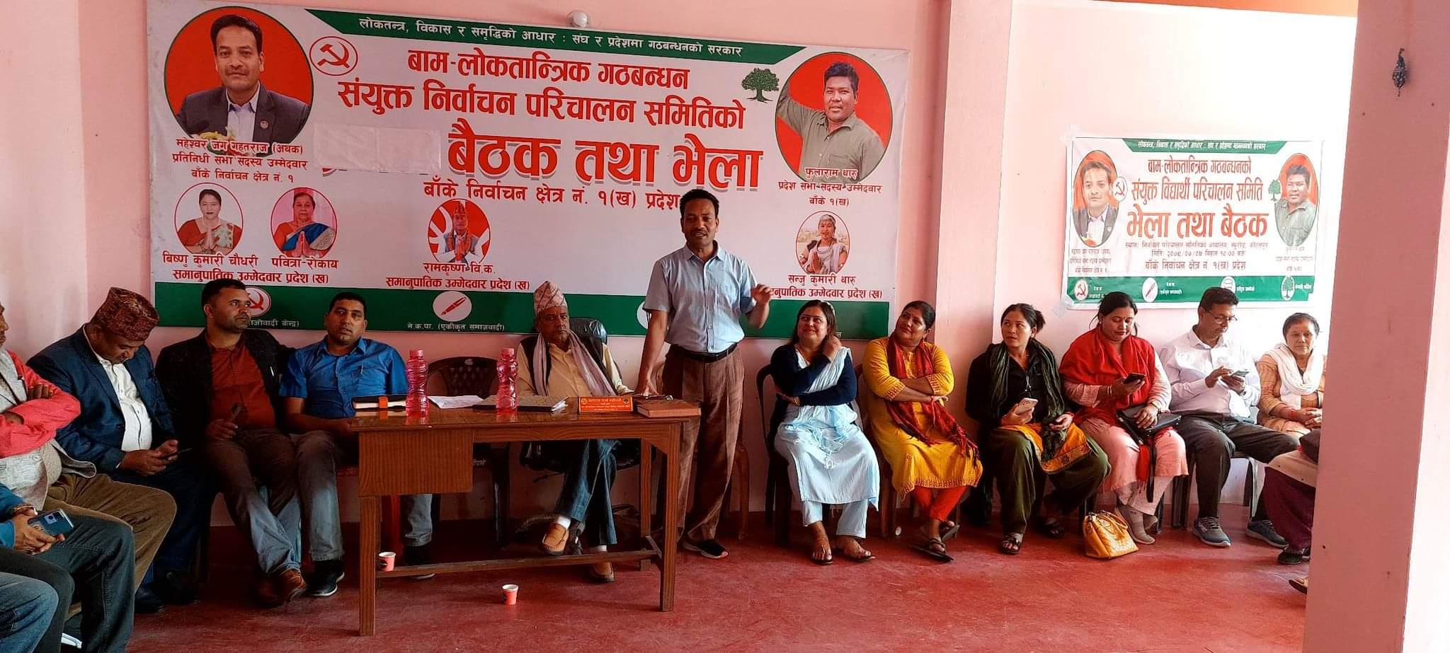निर्वाचन परिचालन समितीका संयोजक बलराम शर्माको अध्यक्षतामा भएको कार्यक्रममा समानुपातिक उम्मेदवार सञ्जु कुमारी थारु, बिष्णु कुमारी चौधरी, पबित्रा रोकाय लगायतको सहभागीता रहेको थियो । छलफल पछि गठबन्धन दलबाट निर्वाचित जनप्रतिनिधीहरुले आगामी मंसिर ४ गते हुने संघ तथा प्रदेश सभा सदस्यका उम्मेदवारलाई बिजयी गराउन खटिने प्रतिबद्धता जनाएका थिए । उनिहरुले स्थानिय सरकार सफल बनाउन संघ र प्रदेश सभामा गठबन्धनका उम्मेदवारहरु बिजयी हुन अनिवार्य रहेको बताएका थिए ।
