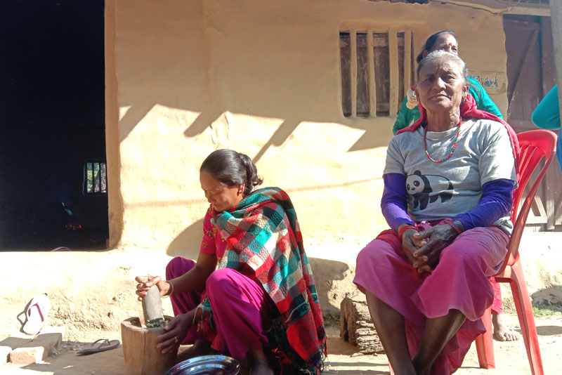 कैलाली : टीकापुर नगरपालिका–१ शक्तिनगर शिविरकी बढ्घर चन्द्रा थारू शनिबार परम्परागत डोक्नीमा अचार कुट्दै थिइन्। शिविरमा रहेको सार्वजनिक भवनमा उनीलगायत अन्य स्थानीयवासी खाना पकाउन व्यस्त थिए। उनले पकाएको खान भोजभतेरका लागि भने होइन। चन्द्रासँगै थुप्रै महिला र पुरुष खाना पकाउनमा निकै व्यस्त देखिन्थे। निर्वाचनका लागि प्रचार–प्रसारमा आउने राजनीतिक दलका नेता तथा उम्मेदवारलाई उनीहरूले शिविरमै रहेको सामुदायिक भवनमा खाना पकाएर खुवाउनेसम्मको काम गर्दै आएका छन्।