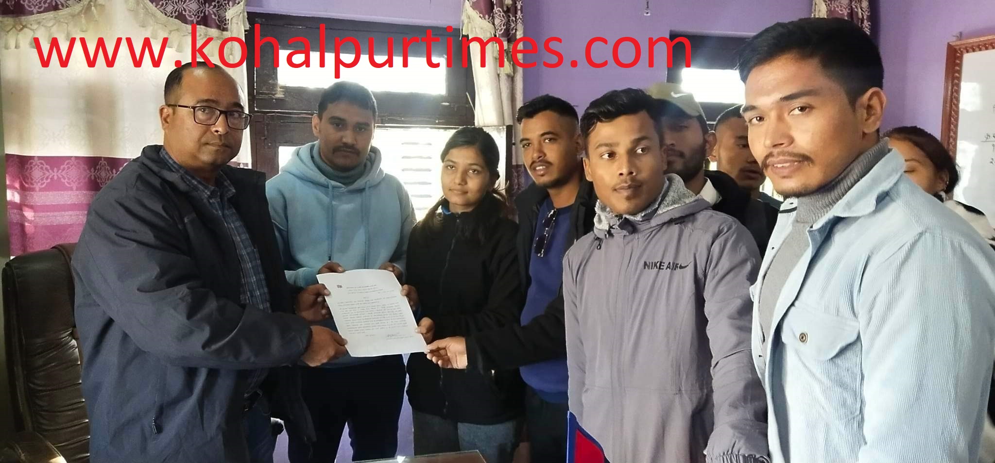 शुक्रबार कोहलपुर स्थित बागेश्वरी क्याम्पसमा बागेश्वरी बहुमुखी क्याम्पस कमिटी सचिब प्रतिभा पङेनीले ध्यानाकर्षण पत्र बाचन गर्दै क्याम्पस प्रमुख दान बहादुर हमाल समक्ष उक्त ध्यानाकर्षण पत्र पेश गरेका छन ।