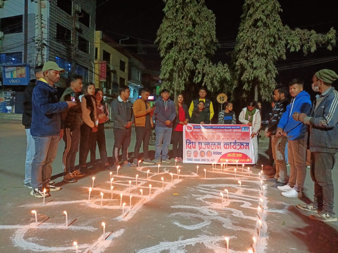 कोहलपुर, बांके: अनेरास्ववियु बागेश्वरी बहुमुखी क्याम्पस कमिटीद्वारा सहिद दिवसको अबसरमा बागेश्वरी बहुमुखि क्याम्पसको प्रांगणमा दिप प्रज्वलन कार्यक्रम सम्पन्न गरेको छ । मंलगलबार सांझ अनेरास्ववियुका केन्द्रिय तथा जिल्ला स्तरीय बिद्यार्थी नेताहरुको उपस्थितीमा दिप प्रज्वलन गर्दै देशका निम्ति आहुती दिने वीर सहीदहरुको स्मरण गरिएको आयोजक अनेरास्ववियु बागेश्वरी बहुमुखी क्याम्पस कमिटीले जनाएको छ ।