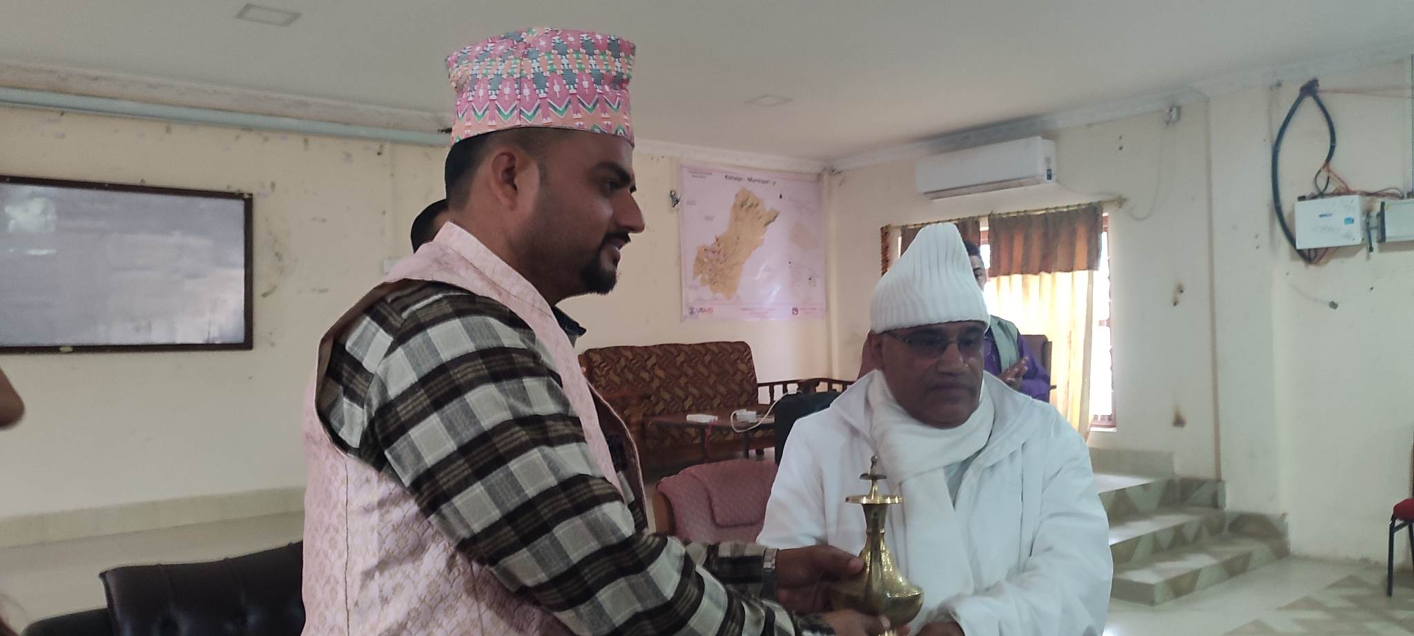 नगर प्रमुख पूर्ण प्रसाद आचार्य, नगर उपप्रमुख संगिता सुवेदी र प्रशासकीय अधिकृत टिकाराम ढकालले शर्मालाई मायाको चिनो प्रदान गर्दै शर्माको बिदाई गर्नुभएको हो। त्यसक्रममा नगर प्रमुख आचार्यले सेवा निवृत्त हुनुभएका शर्माको बाँकी जीवन सहज, सरल र उर्जाशिल बनोस् भन्ने कामना गर्नुभयो ।
