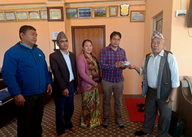 रामपुर–३ बोहरीडाँडा बस्ने ७४ वर्षीय टोपबहादुरसिं ठकुरीबाट परिचयपत्र वितरण कार्य सुरु भएको छ । डिजिटल प्रविधिको परिचयपत्र पाउँदा ज्यादै खुसी लागेको उहाँले बताउनुभएको छ ।