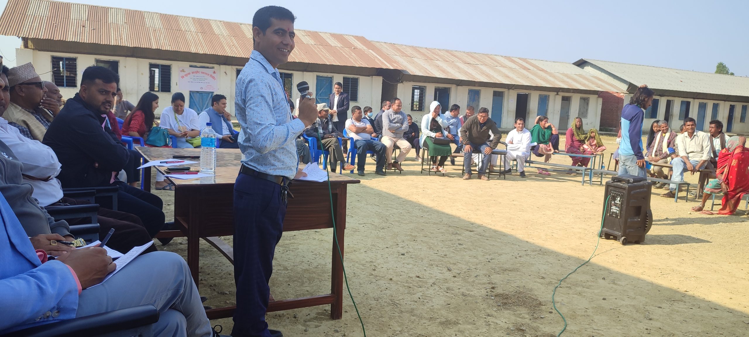 उहाँले आफ्नो गाउँटोलको विकासमा चासो राख्न स्थानीयबासीलाई समेत सुझाव दिनुभयो । वडा अध्यक्ष दिपेन्द्र चौधरीको अध्यक्षतामा भएको कार्यक्रमको उद्देश्यबारे नगरपालिकाका प्रमुख प्रशासकीय अधिकृत टिकाराम ढकालले प्रकाश पार्नुभएको थियो । कार्यक्रममा नगरपालिकाका आर्थिक विकास समिति संयोजक अनिता बुढा, नेपाल राष्ट्रिय आधारभूत विद्यालयका प्रख विश्वनाथ थारु लगायतले आ–आफ्नो धारणा राख्नु भएको थियो ।
