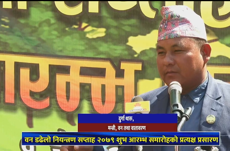 वन डढेलो नियन्त्रण सप्ताह २०७९ अन्र्तगत आज बुधवार राप्ति सोनारीको ओभरीमा आयोजित सप्ताह शुभारम्भ समारोहलाई सम्बोधन गर्दै मन्त्रि चौधरीले यस्तो बताएका हुन । बन जंगल डढेलोका कारण मासिदै जाने र निशुल्क रुपमा मानव तथा अन्य जिब जन्तुले फेर्ने अक्सिजनको लागि अस्पताल सम्म पुग्नुपर्ने दिन आउन नसक्ला भन्ने स्थिती नरहेको भन्दै मन्त्रि चौधरीले एक झिल्को आगोले वन नै सखाप हुने मात्र नभई त्यससंग निर्भर तमाम जिवहरुको जीवन नै समाप्त हुने बताए ।