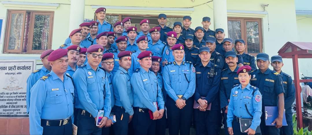 कोहलपुर ,बाँके : फागुन महिनामा उत्कृष्ट कार्य सम्पादन गर्ने ७ जना प्रहरी कर्मचारीहरूलाई प्रोत्साहन स्वरूप ईलाका प्रहरी कार्यालय कोहलपुरले पुरस्कृत गरेको छ । इलाका प्रहरी कार्यालय कोहलपुरका प्रमुख प्रहरी नायब उपरीक्षक सुन्दर तिवारीले नगद पुरस्कार प्रदान गरी पुरस्कृत गरेका हुन् ।