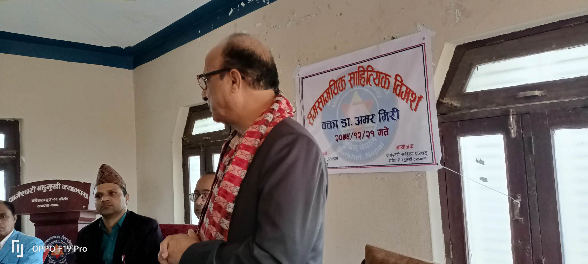 बागेश्वरी बहुमुखि क्याम्पस कोहलपुरको सभा हलमा आयोजित कार्यक्रमको अध्यक्षता बागेश्वरी साहित्य परिषदका अध्यक्ष पुष्कर रिजालले गरेका थिए । बागेश्वरी बहुमुखि क्याम्पस कोहलपुरका क्याम्पस प्रमुख दान बहादुर हमाल, स्ववियु सभापति देबेन्द्र बहादुर बुढा, हाम्रो पुर्णिमा साहित्य प्रतिष्ठानका उपाध्यक्ष सुमित्रा न्यौपाने, सचिव बद्रि ढकाल, ज्ञानोदय पुष्तकालयका उपाध्यक्ष मणि प्रसाद गैरे, पत्रकार बिष्णु वेल्वासे, बागेश्वरी क्याम्पसका प्रशासन प्रमुख बेदराज लम्साल प्राध्यापकहरु, स्ववियु पदाधिकारी, बिद्यार्थी एबं कोहलपुरमा उपलब्ध साहित्यकारहरुको उपस्थिती कार्यक्रमको सञ्चालन प्राध्यापक नवीन किसोर रत्नले गरेका थिए ।