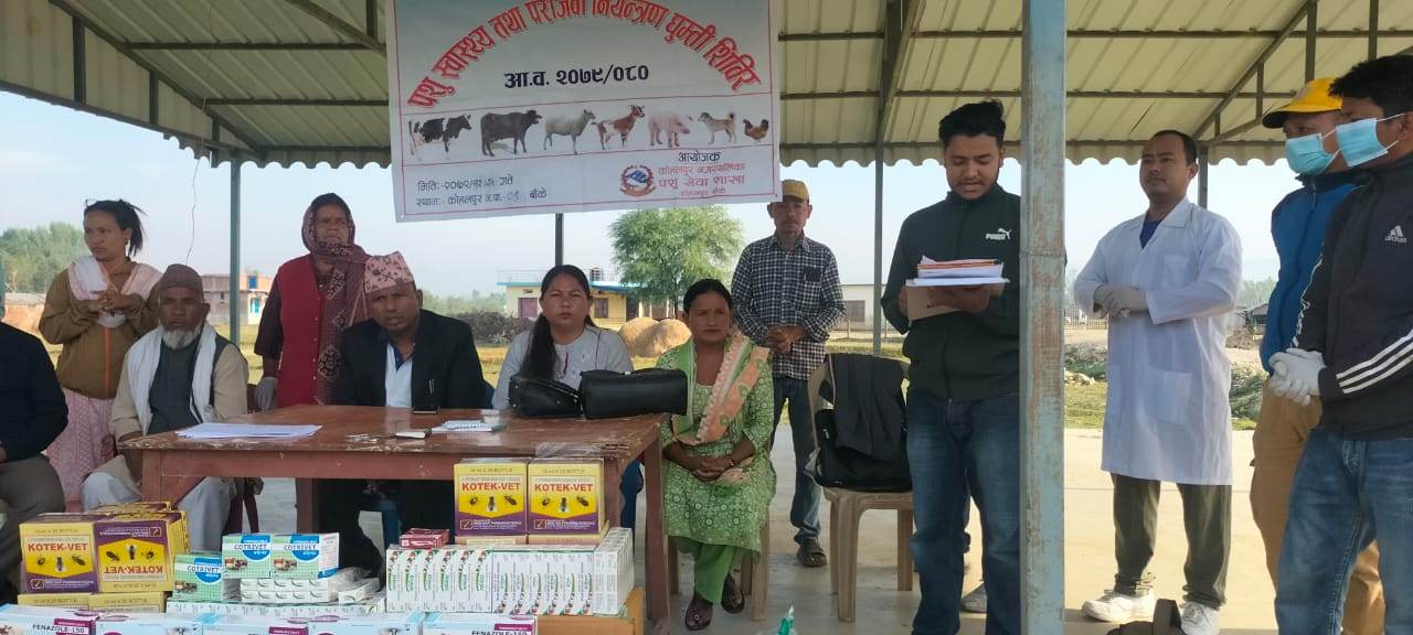 कोहलपुर,बाँके: बाँकेको कोहलपुर नगरपालिका वडा नं.९ झन्डहवामा आज शनिबार नि:शुल्क पशु स्वास्थ्य तथा परिजिवी नियन्त्रण सम्बन्धि घुम्ती शिविर सम्पन्न भएको छ । कोहलपुर नगरपालिका नगर पशु स्वास्थ्य शाखाको आयोजनामा शुरु गरिएको शिविरमा पशुहरुको उपचार, परिजिवी नियन्त्रण, बन्ध्याकरण, रोग नियन्त्रण खोप सहितको सेवा प्रबाह गरिने पशु स्वास्थ्य शाखा प्रमुख गोबिन्द रोकाले जानकारी दिए ।