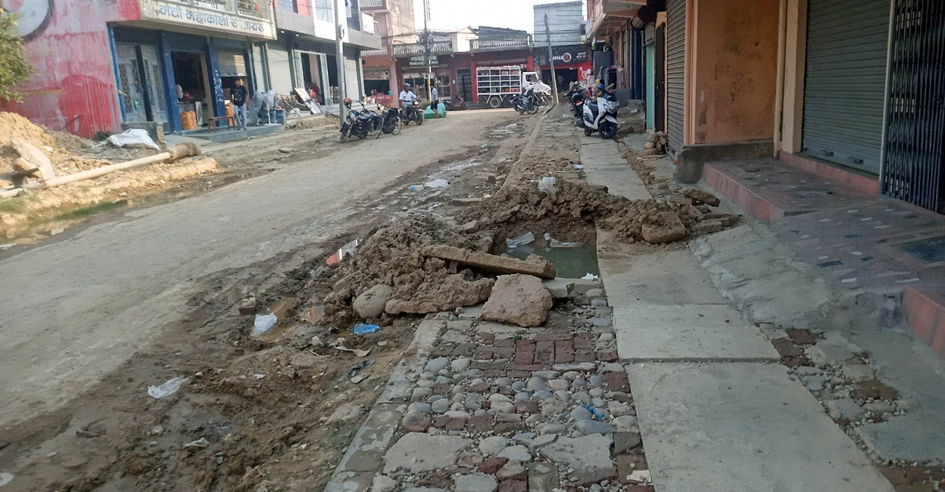 कोहलपुर,बाँके: बाँके कोहलपुरमा ११ मा रहेको टाउन प्लानमा नाली खन्ने क्रममा पाईप काटिएपछि ४ दिन देखि मर्मत हुन सकेको छैन । विकास गर्दा एकिकृत रुपमा नहुने परीपाटिले गर्दा कहिले सडक त कहिले खानेपानीले बाटो कुरुप पार्ने र एकले बनाएको विकास अर्कोले बिगार्ने समस्या टाउन भित्र हुदै आएको छ ।
