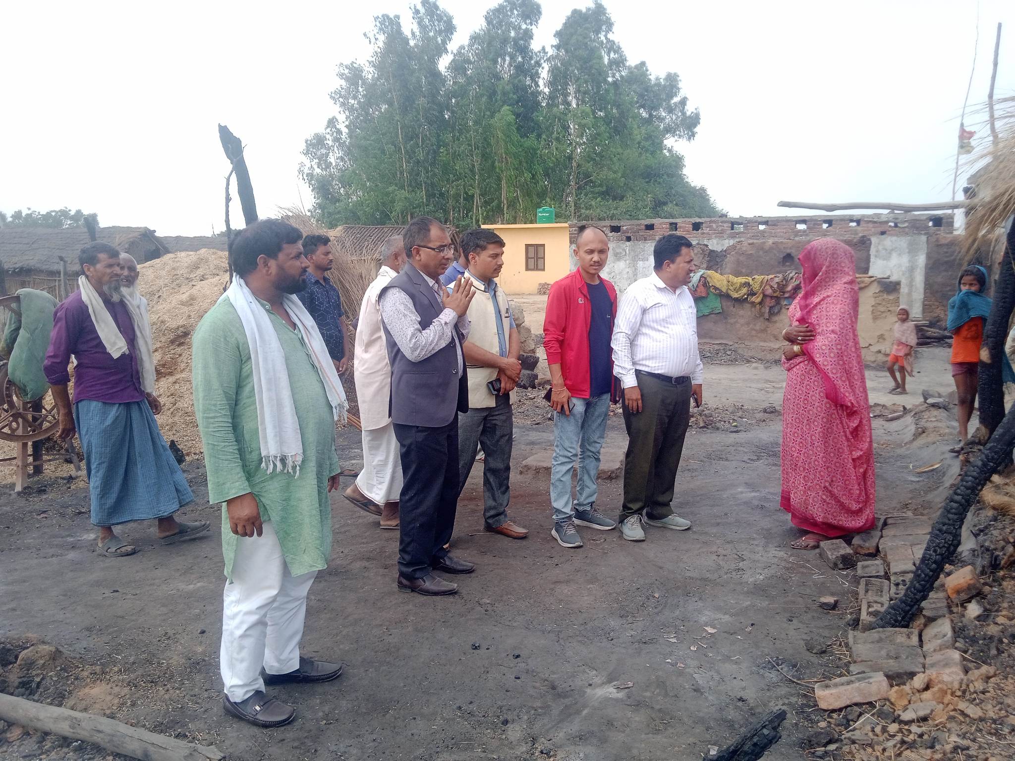 नरैनापुर,बाँके:गत आईतवार बाँके जिल्लाको नरैनापुर गाउपालिका स्थित वडा नं.५, ३ र ४ का जमुनि, गेगली, जयरामपुर्वा र जनतापुरमा भएको आगलागि पिडतहरुको माननिय संघिय सांसद सुर्य ढकालले स्थलगत अनुगमन गरी तत्कालका लागि राहत सामाग्रि बितरण गरेका छन ।