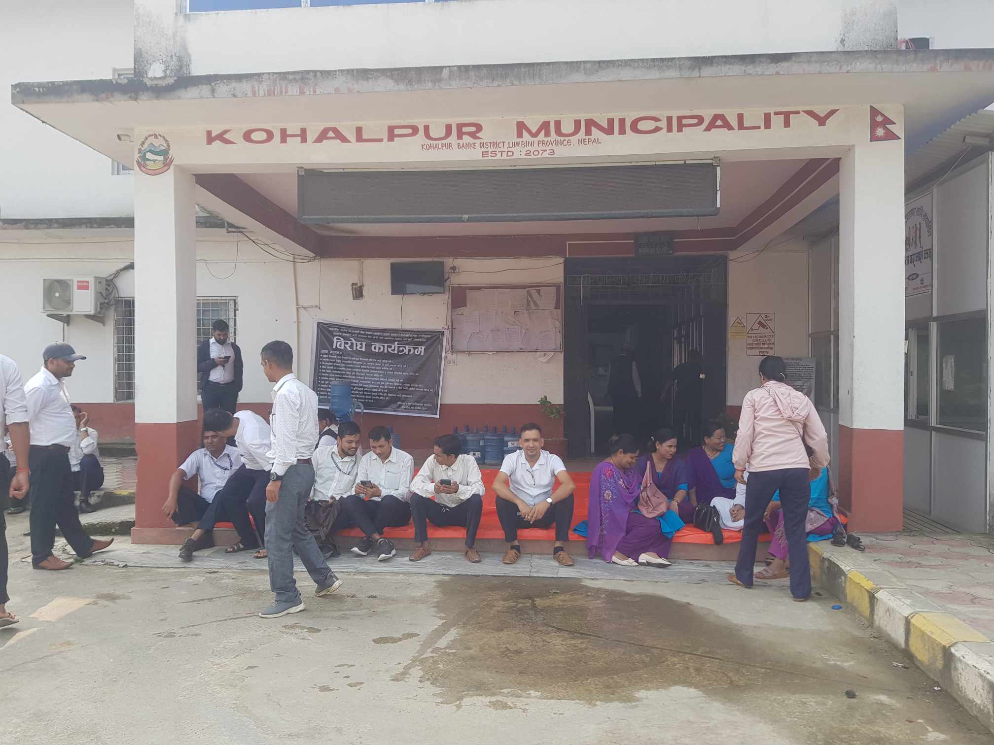कोहलपुर,बाँके: स्थानिय तह कर्मचारी केन्द्रिय संघर्ष समितीको निर्णय बमोजिम देश भरका ७५३ स्थानिय तहका कर्मचारी आन्दोलमा होमिएका छन । कोहलपुर नगरपालिका स्तरका स्थानीय तहका कर्मचारीहरु पनि आज आईतवार कार्यालय समय शुरु हुनु अगाबै पेन डाउन गर्दै आन्दोलनमा उत्रिएका छन । नेपाल सरकारले संघिय संसदमा पेश गर्न लागेको संघिय निजामती ऐनका प्राबधानका बिषयमा असहमती जनाउदै आज आठौं दिन सम्पुर्ण कामकाज ठप्प पार्दै पेन डाउन सहित स्थानिय तहमा कार्यरत कर्मचारीहरु नगरपालिका परिसरमा धर्नामा बसिरहेका छन ।