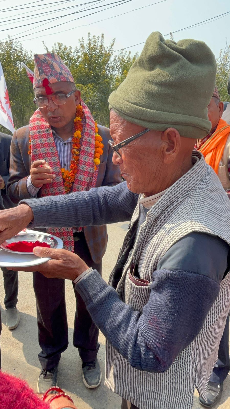 कार्यक्रमकै क्रममा ८२ वर्षीय ज्येष्ठ नागरिक कृष्णबहादुर खड्काले उम्मेदवार ढकाललाई फूलको माला, खादा र अबिरसहित “विजयी भव” भन्दै भावुक शुभकामना व्यक्त गर्नुभयो। उमेरले ८ दशक पार गरिसक्नुभएका खड्काको आशिर्वादले कार्यक्रमस्थलमा भावनात्मक माहोल सिर्जना गरेको थियो। उपस्थित स्थानीयले यसलाई पुस्तान्तरणको विश्वास र आशाको प्रतीकका रूपमा व्याख्या गरेका थिए।