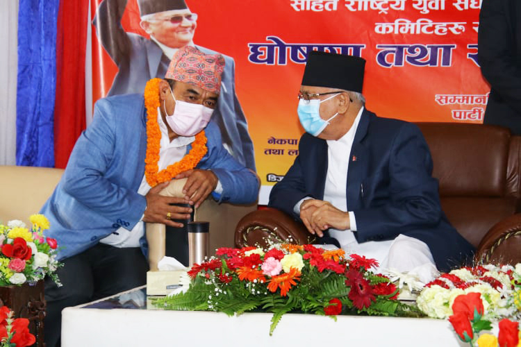 नेकपा एमालेका अध्यक्ष केपी शर्मा ओलीले अरु सबै पार्टी मिलेर पनि एमालेसँग लड्न नसक्ने बताएका छन् । हालै भएको पार्टी विभाजनबाट उनले रुखबाट पात खसेको संज्ञासमेत दिए । युवासंघको भेलालाई सम्वोधन गर्दै ओलीले भने, ‘एमालेसँग एक्लै लड्न सकिन्न भन्ने सबैलाई थाहा छ । कसैले नचिताए हुन्छ ।’ १० वटा पार्टी मिल्दा पनि जम्माजम्मी १२० जना पुग्ने ओलीले दावी गरे । ‘एक–एक दर्जन मान्छे भएका दश पार्टी मिल्दा कति हुन्छ ? १० दर्जन नै त भए होला नि होइन रु १२० जनाको मोर्चाले कसरी हामीसँग लड्ने ? अरु सबै जोड्न पनि एमालेको कम्मर कम्मर मात्रै आउने हुन् ।’ उनले अबको चुनावमा प्रतिस्पर्धीहरु हुने तर प्रतिस्पर्धा नहुने भविष्यवाणी गरे । ‘चुनावमा उठेपछि प्रतिस्पर्धी हुन्छन् । तर अबको चुनावमा एमालेको कसैसँग प्रतिस्पर्धा हुँदैन,’ ओलीले भने, ‘एमालेबाट को उम्मेदवार बन्छ, अहिले थाहा छैन, तर जो उठे पनि जित्छ । हामीले प्रतिस्पर्धा हुन दिने नै होइन ।’ ओलले माधव नेपालको पार्टीसँग केन्द्रिय समितिका ५५ र संसदीय दलका २९ बाहेक अरु मान्छे नभएको बताए । पार्टी फुटाउनेहरुलाई उनले कुलंघारको संज्ञा दिए । ओलीले भने, ‘रुखबाट केही पातहरु खस्दैमा नयाँ पालुवा उम्रिन रोकिँदैन । पालुवाहरु पलाइरहेका छन् । चिन्ता लिनु पर्दैन ।’