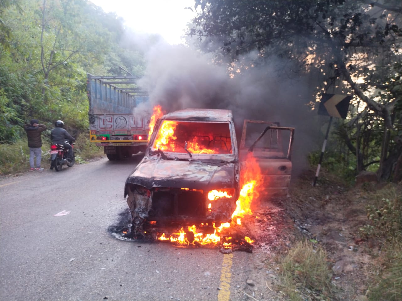 गुडिरहेको जिपमा एक्कासि आगलागी