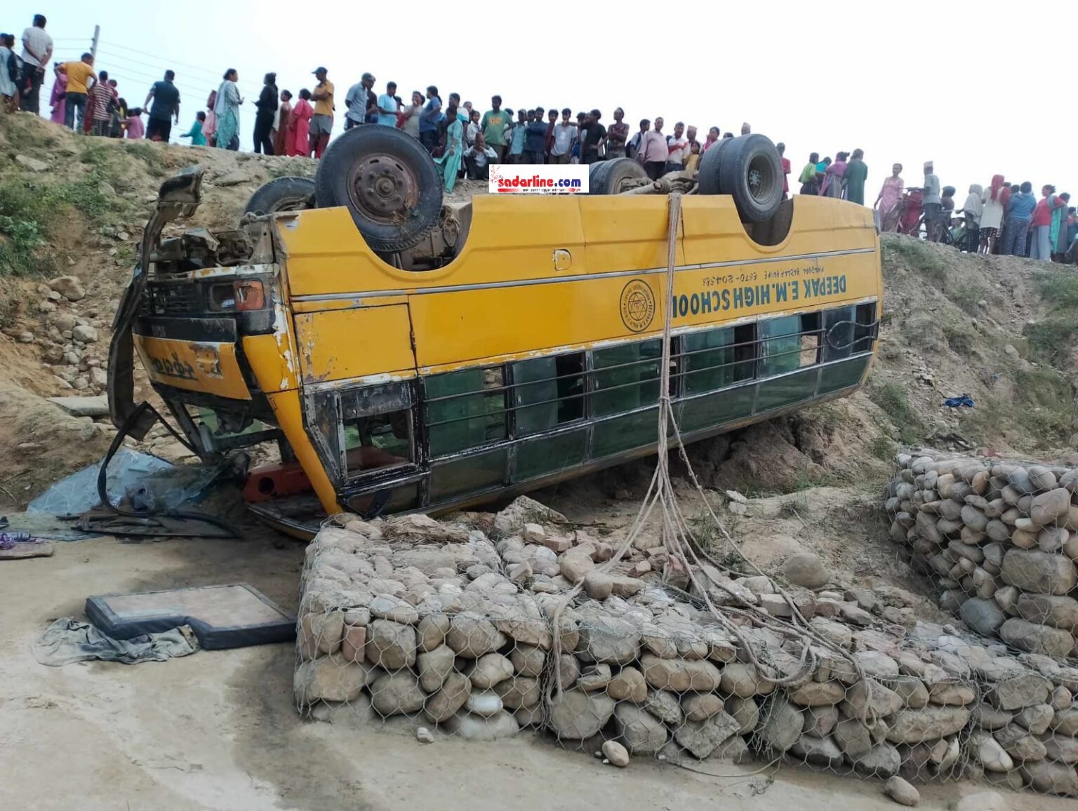 खजुरामा स्कुल बस पल्टिदा एकको मृत्यु ८ घाइते