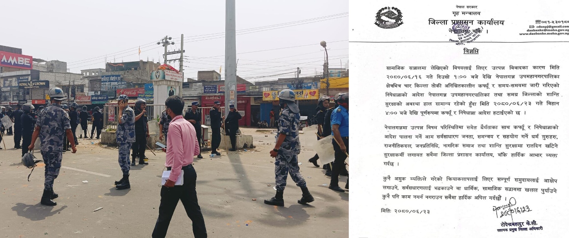 नेपालगञ्जमा कर्फ्यू र निषेधाज्ञा पूर्ण रुपमा हट्यो