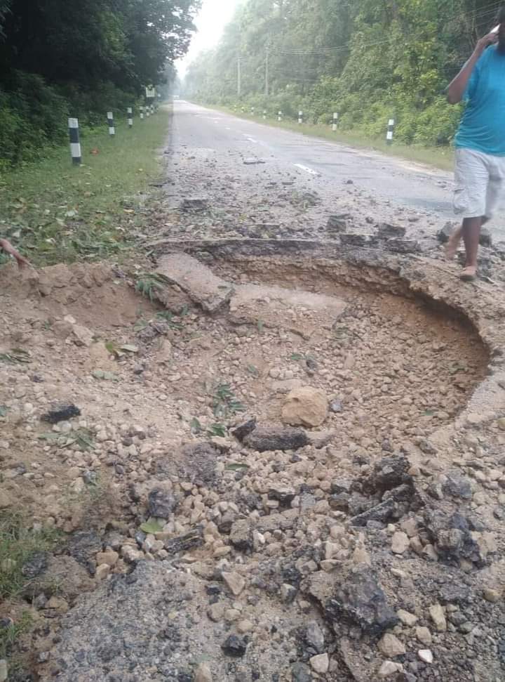 पुर्ब पश्चिम राजमार्गमा बिस्फोट, सडकमा पर्यो भ्वाङ्ग