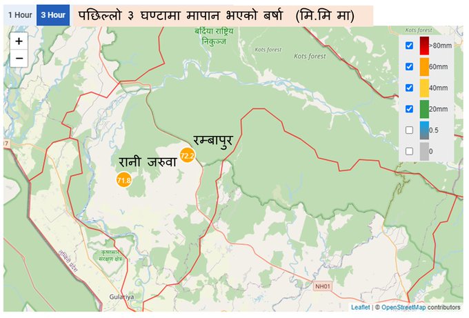 बर्दियाको रम्भापुरमा भारी वर्षा, नदी तटीय क्षेत्रमा सतर्कता अपनाउन सुझाव
