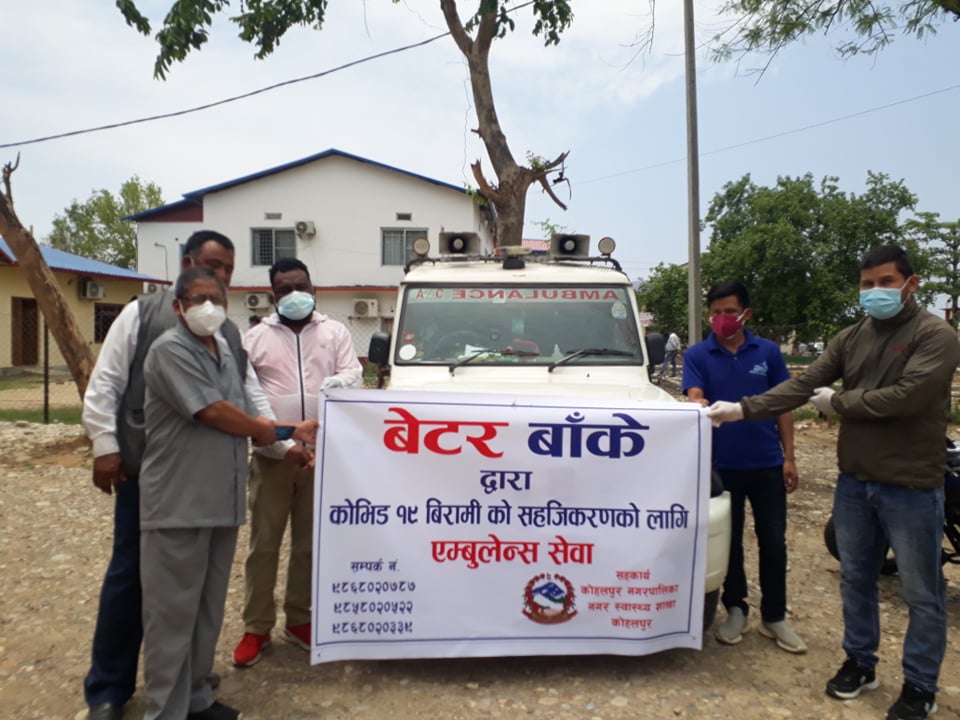 बेटर बाँकेद्धारा कोहलपुर नगरपालिकालाई अक्सिजन सहितको एम्बुलेन्स हस्तान्तरण