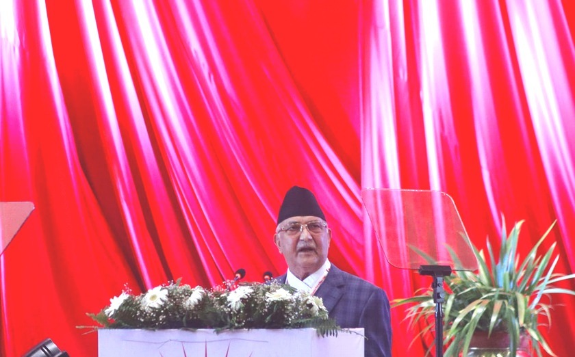 विधान महाधिवेशनमा ओलीको सम्बोधन : प्रचण्ड, माधव नेपाल र अदालतको आलोचना