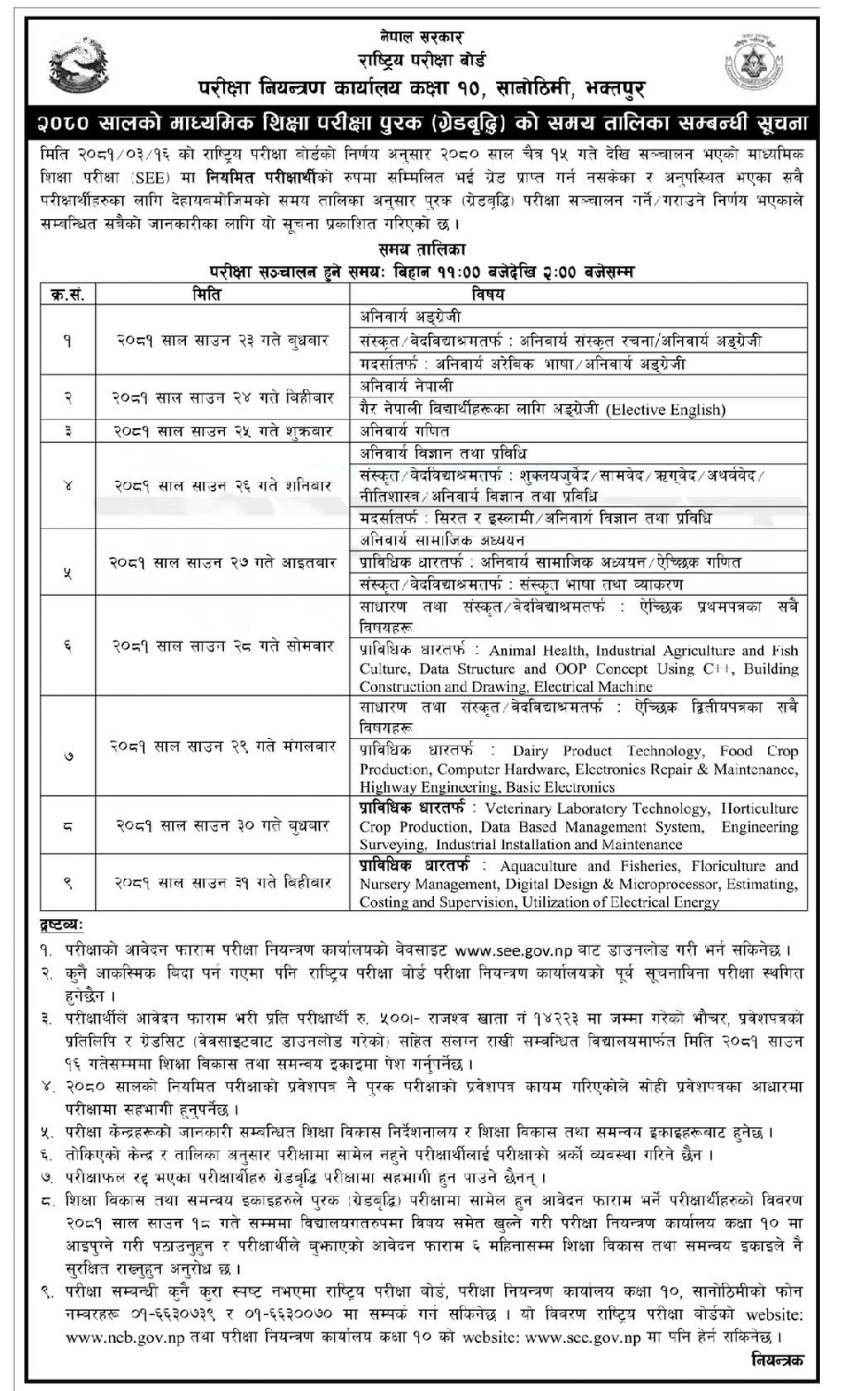 एसईई मौका परीक्षाको तालिका सार्वजनिक (तालिकासहित