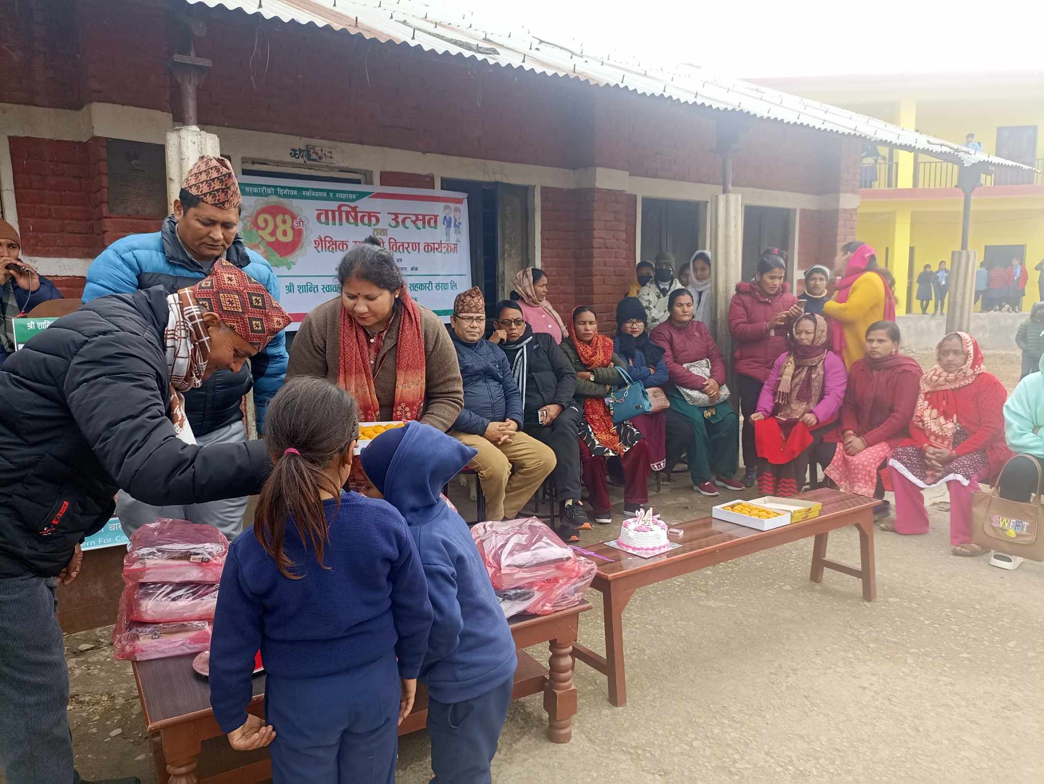 शान्ति स्वावलम्बन सहकारीको बार्षिक उत्सवमा विद्यार्थीहरुलाई पोषाक वितरण