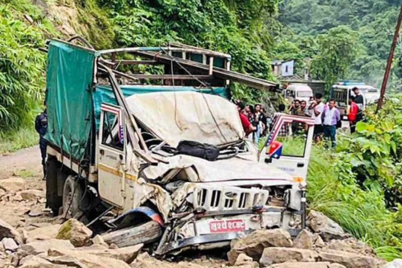 सिद्धबाबा क्षेत्रमा गुडिरहेको जीपमाथि ढुंगा खस्दा तीन जना घाइते