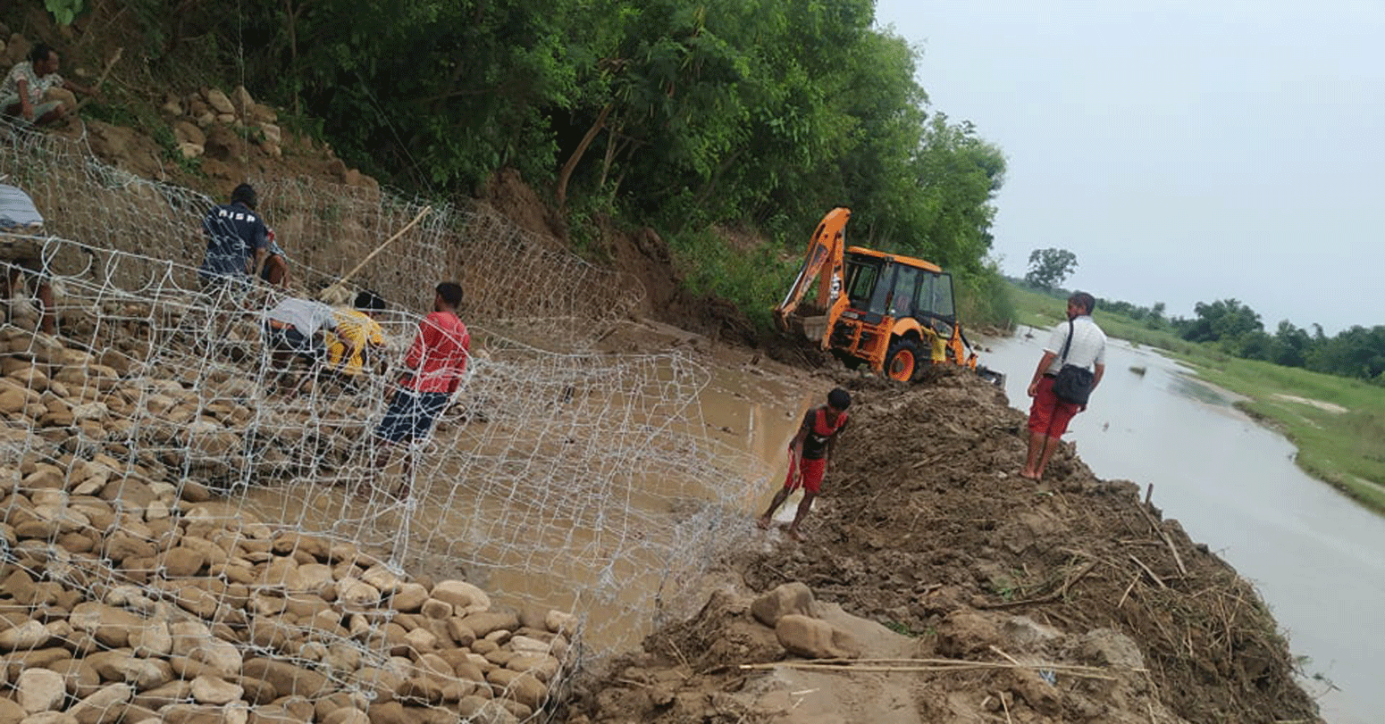 बस्ती जोगाउन राप्ती नदीमा तटबन्ध निर्माण गरिँदै