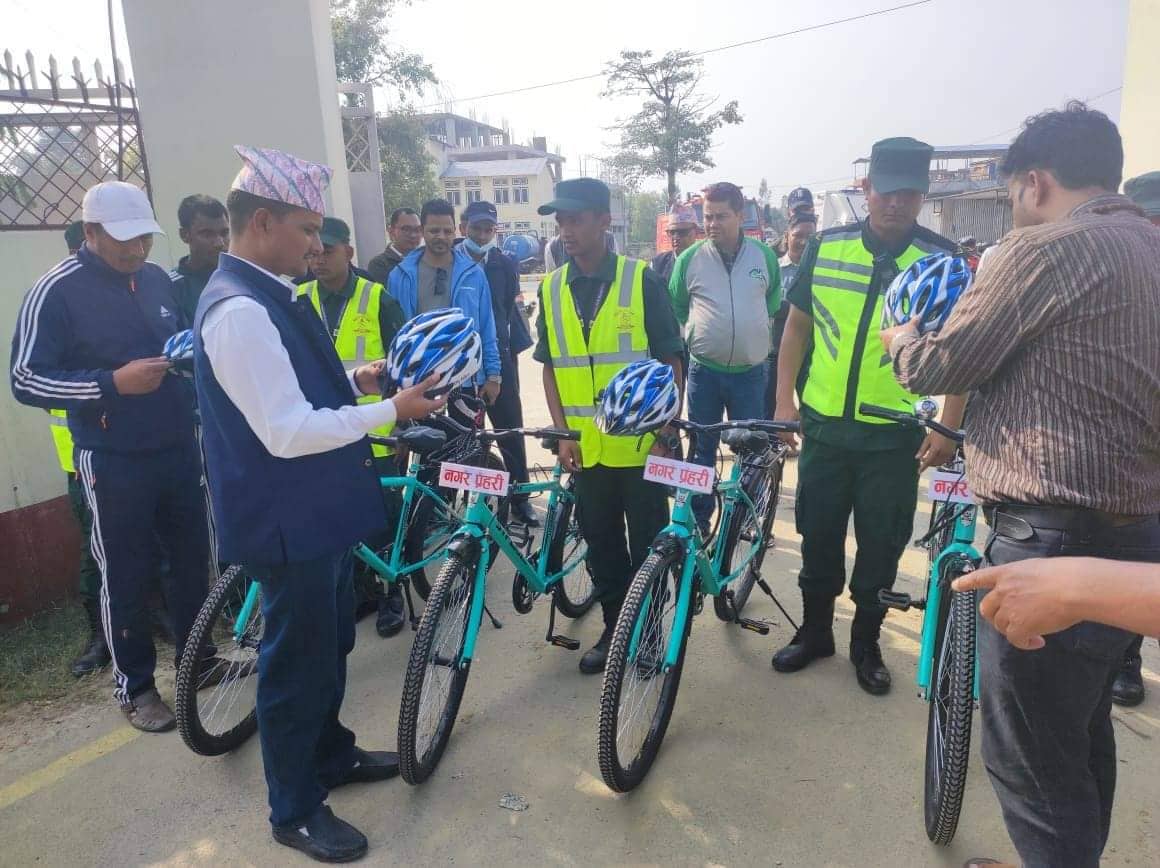 नगरपालिकाद्वारा नगर प्रहरीलाई गस्तीका लागि साइकल वितरण