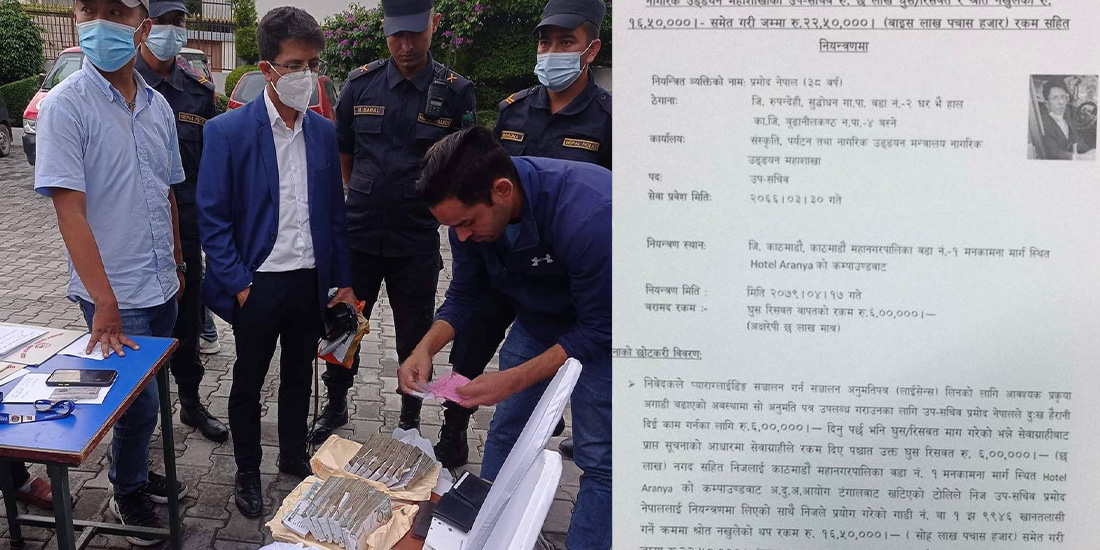 ६ लाख घुससहित पर्यटन मन्त्रालयका उपसचिव पक्राउ, गाडीबाट १६ लाख ५० हजार बरामद