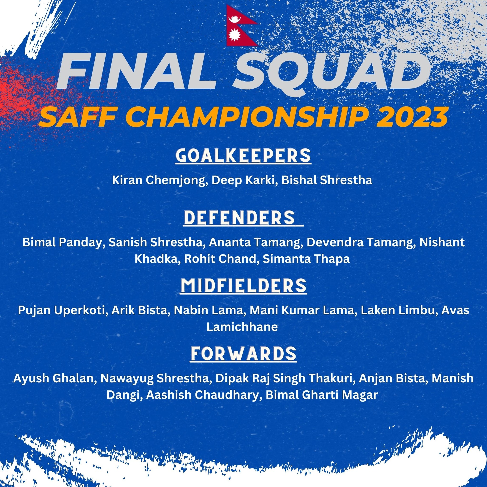 साफ च्याम्पियनसिप खेल्ने नेपाली टोली घोषणा